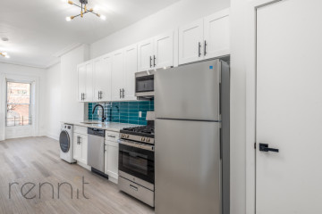 Apartment features modern open-concept designs. Sleek finishes and modern hardware add an contemporary edge, while large French-paned windows perfectly frame beautiful views of Bed-Stuy and of natural light. Kitchen with stainless steel appliances, including dishwasher, and extra space for table/island. Spacious bathrooms, large closet, split AC units, hardwood floors throughout, and video intercom system!